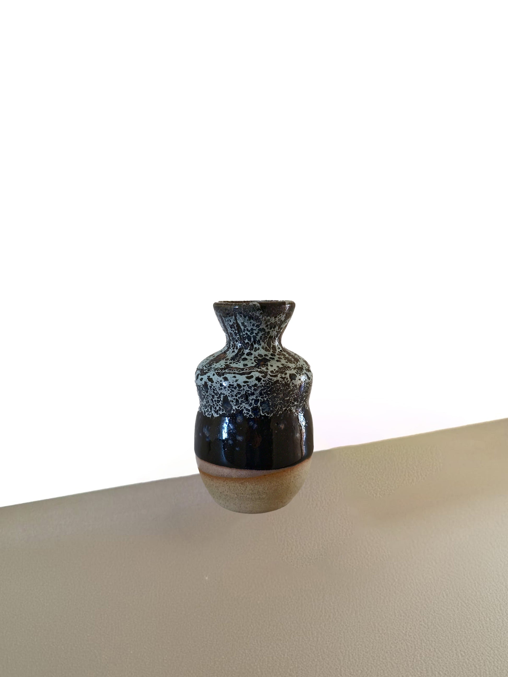 small vase ✦ small vessel ✦ narrow neck ✦ glossy black ✦ aqua melt ✦ stoneware ✦wheel thrown ✦ hand wash recommended